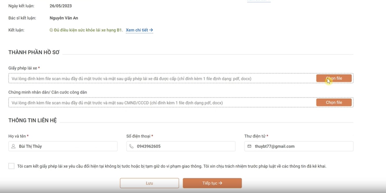 Bước 5: Kiểm tra thông tin cá nhân và giấy phép lái xe