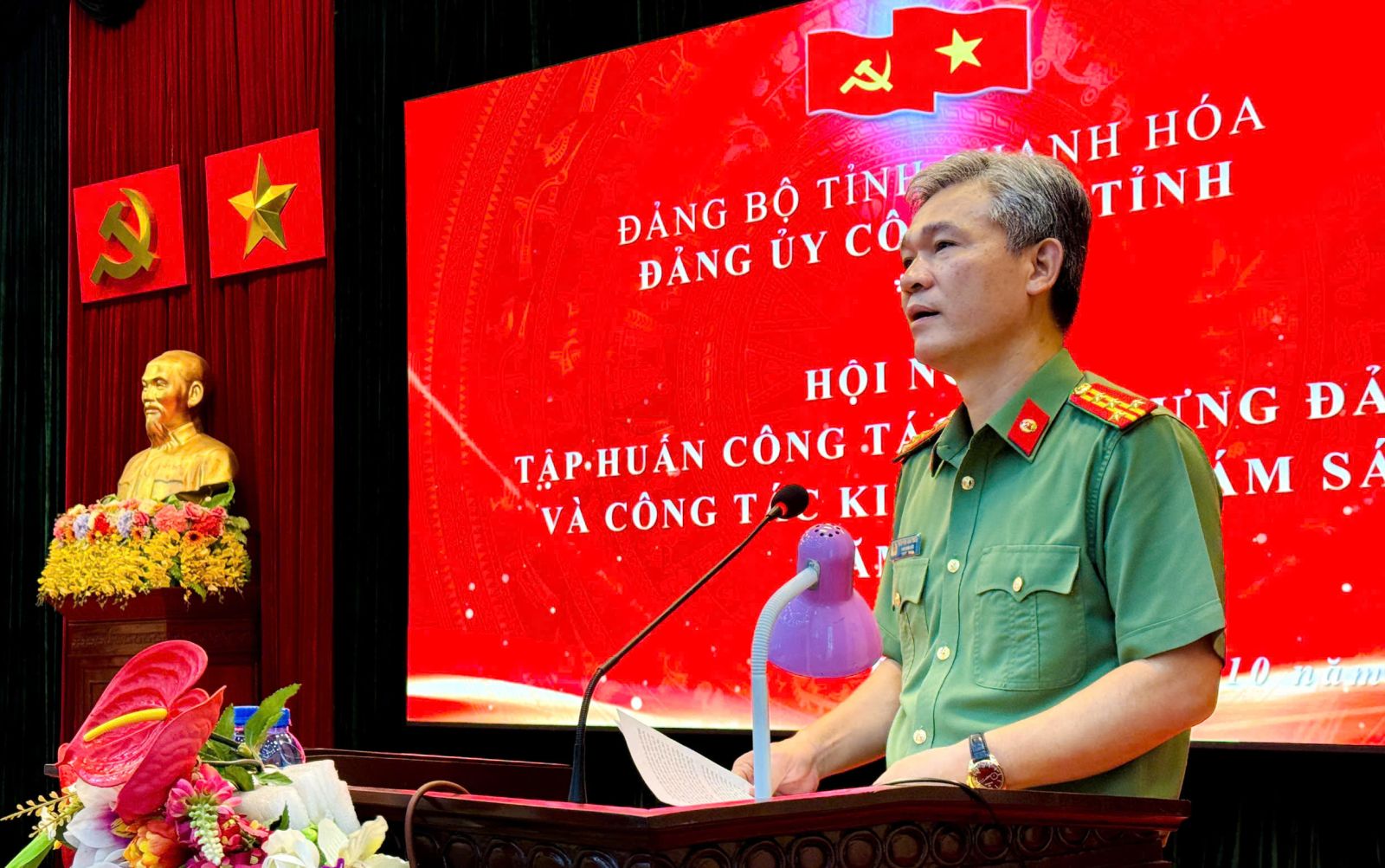 Phát biểu khai mạc lớp tập huấn, đồng chí Đại tá Nguyễn Anh Tuấn, Phó Bí thư Đảng ủy, Phó Giám đốc Công an tỉnh và đồng chí Mạc Anh Tuấn, Phó Chủ nhiệm Ủy ban Kiểm tra Tỉnh ủy Thanh Hóa nhấn mạnh: Công tác kiểm tra, giám sát và kỷ luật của Đảng có vai trò, vị trí hết sức quan trọng trong công tác xây dựng Đảng, là một trong những phương thức lãnh đạo chủ yếu của Đảng. Trong các nhiệm kỳ vừa qua, Đảng ủy và cấp ủy các cấp trong Công an Thanh Hóa luôn quan tâm, chú trọng thực hiện công tác xây dựng Đảng gắn liền với công tác kiểm tra, giám sát; đã quán triệt, triển khai nghiêm túc các chỉ thị, nghị quyết, quy định của Đảng và hướng dẫn của Ủy ban Kiểm tra cấp trên. Qua đó, góp phần nâng cao năng lực lãnh đạo, sức chiến đấu của các tổ chức cơ sở đảng, xây dựng Đảng bộ Công an tỉnh trong sạch, vững mạnh.