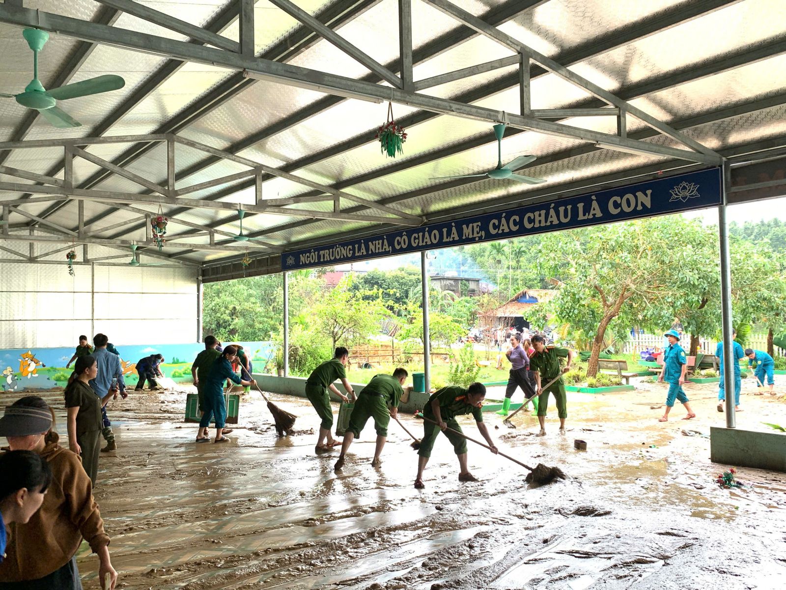 Cô giáo Cầm Thị Thuý, Hiệu trưởng trường Mầm non Xuân Lẹ chia sẻ: Điểm trường Mầm non Xuân Lẹ thuộc địa bàn thôn Liên Sơn - thôn đặc biệt khó khăn của xã, lại ở khu vực bị ngập nặng, ảnh hưởng đến việc quay lại trường của trẻ. Việc Công an xã Xuân Chinh và các lực lượng hỗ trợ nhà trường dọn dẹp điểm trường trong lúc khó khăn này là việc làm ý nghĩa, thiết thực để cô và trò sớm quay lại lớp.