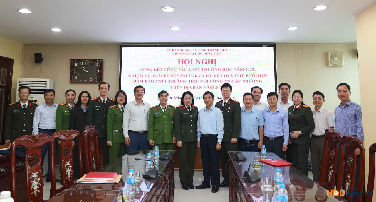Sáng 25/12/2025, Công an các phường Hạc Thành, Quảng Phú và Trường Đại học Hồng Đức đã tổ chức Hội nghị tổng kết công tác an ninh, trật tự (ANTT) trường học năm 2025; triển khai phương hướng, nhiệm vụ, giải pháp năm 2026 và ký kết Quy chế phối hợp bảo đảm ANTT trường học...