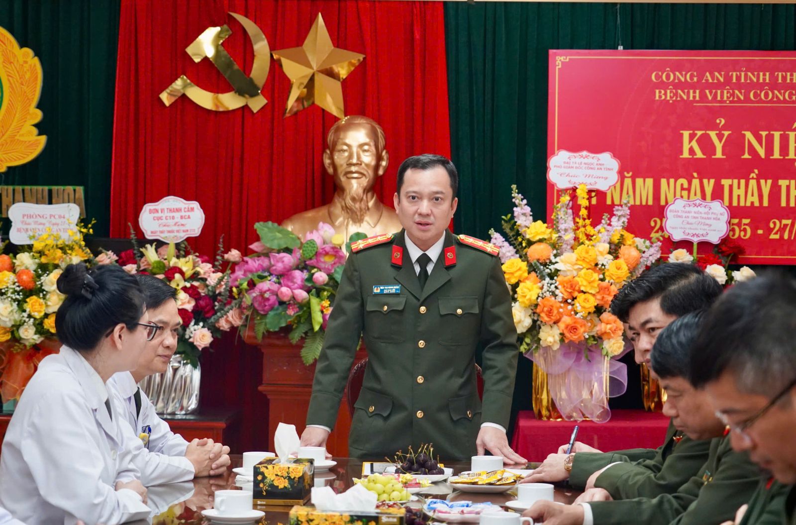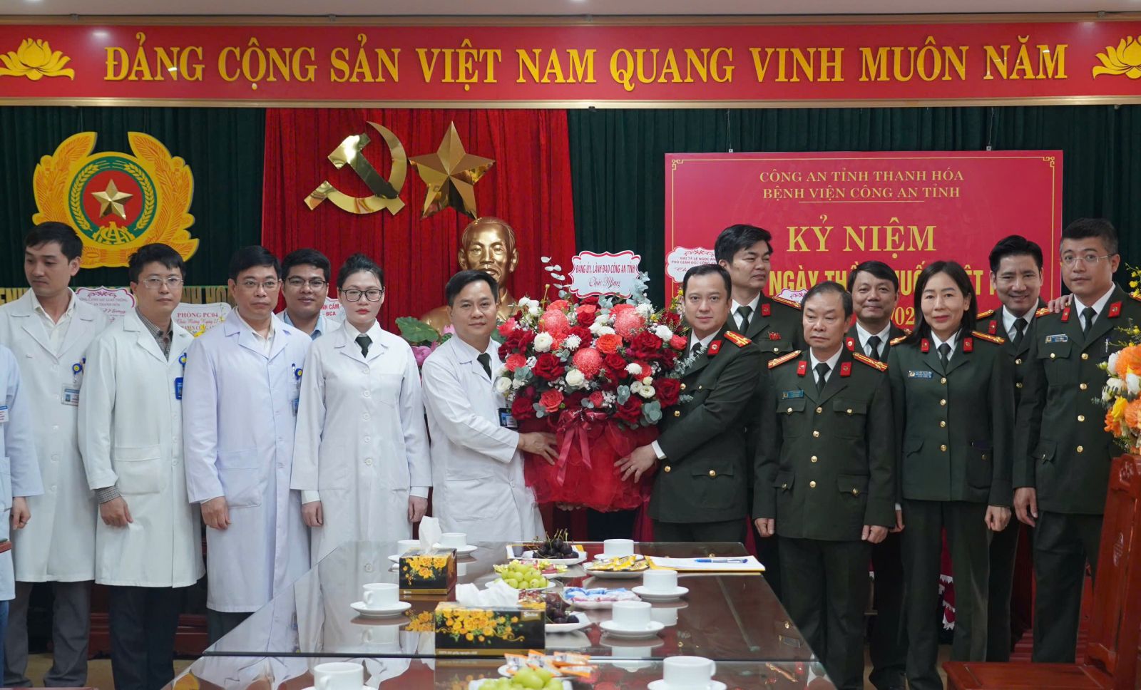 Nhân kỷ niệm 71 năm Ngày Thầy thuốc Việt Nam (27/02/1955 - 27/02/2026), sáng 27/02/2026, Đoàn công tác của Công an tỉnh Thanh Hóa do Đại tá Trần Thái Quang Hoàng, Phó Giám đốc Công an tỉnh làm Trưởng đoàn đã đến thăm, tặng hoa và chúc mừng đội ngũ y, bác sĩ, cán bộ, chiến sĩ, nhân viên y tế Bệnh viện Công an tỉnh Thanh Hóa và Bệnh viện Đa khoa Hợp Lực.