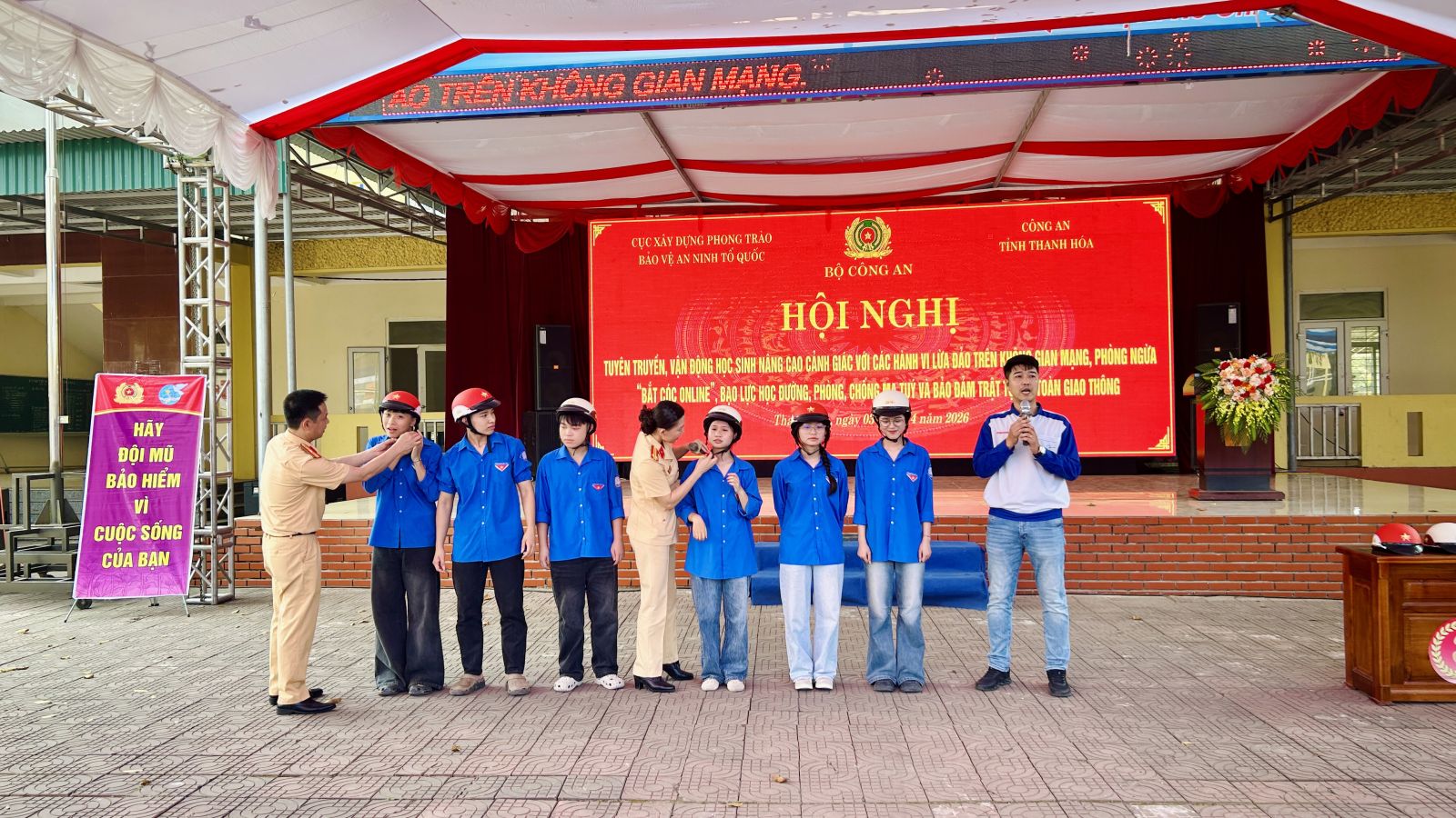 Sáng 03/4/2026, tại Trường THPT Triệu Sơn 1, Cục Xây dựng phong trào bảo vệ an ninh Tổ quốc (Bộ Công an) phối hợp với Công an tỉnh Thanh Hóa, Công an xã Triệu Sơn và Ban Giám hiệu Trường THPT Triệu Sơn 1 tổ chức Hội nghị tuyên truyền pháp luật, trang bị kỹ năng phòng, chống tội phạm, bảo đảm an toàn giao thông cho toàn thể cán bộ, giáo viên và hơn 1.300 học sinh…