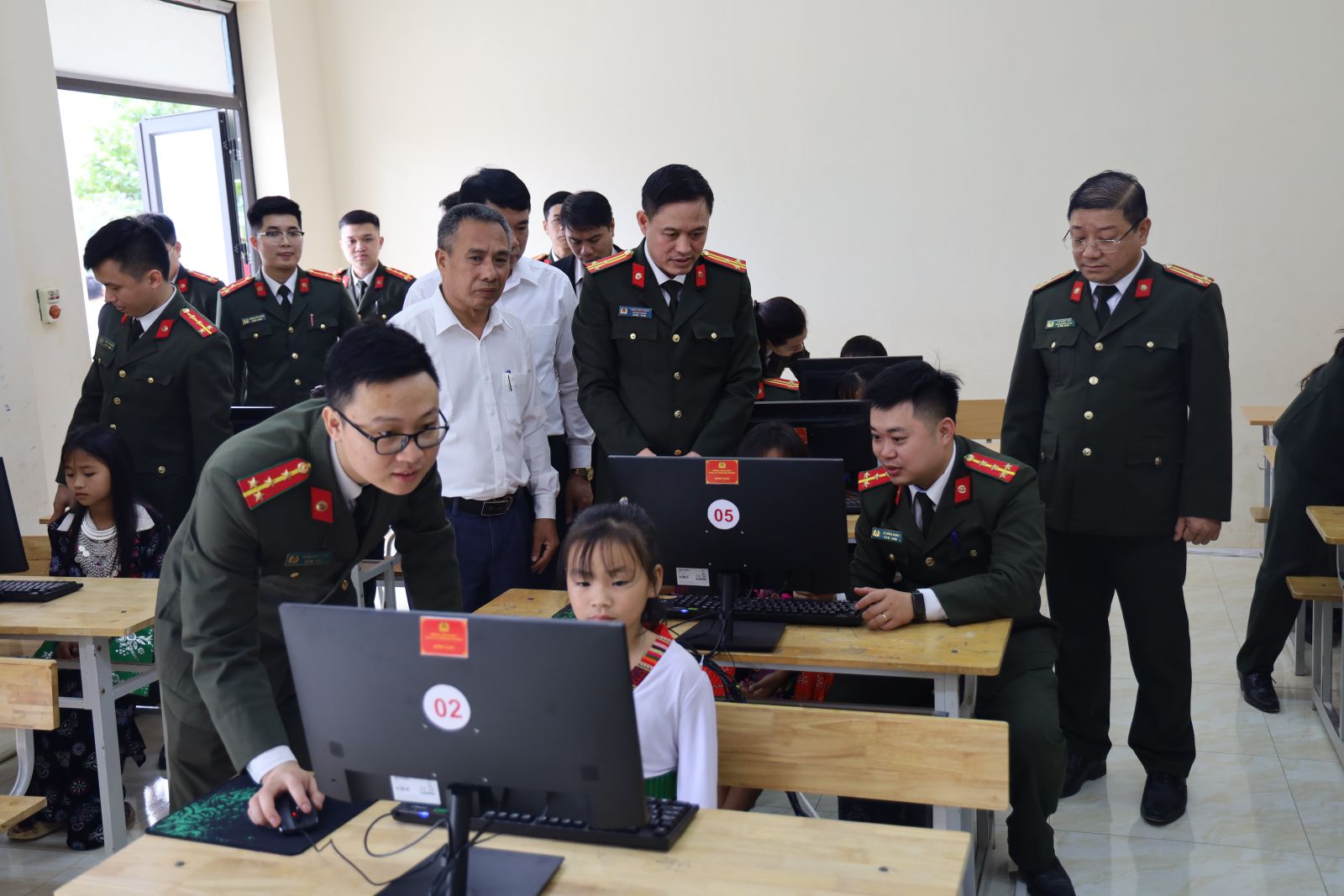 Không chỉ dừng lại ở việc tuyên truyền lý thuyết, Phòng Tham mưu Công an tỉnh đã mang đến những món quà thiết thực, hiện thực hóa ước mơ tiếp cận công nghệ của thầy và trò vùng cao. Với tinh thần "đồng hành cùng cơ sở", Đoàn đã trao tặng Trường Phổ thông dân tộc bán trú THCS Mường Lý một Phòng Tin học trị giá 70 triệu đồng, bao gồm 06 bộ máy tính mới hiện đại, hệ thống ổn áp và thiết bị phát sóng Wifi chuyên dụng. Đồng thời, đơn vị đã cử những cán bộ công nghệ thông tin mua sắm thiết bị, sửa chữa, nâng cấp 5 máy tính hư hỏng và hướng dẫn các giáo viên, học sinh nhà trường cách sử dụng máy tính hiệu quả, an toàn.