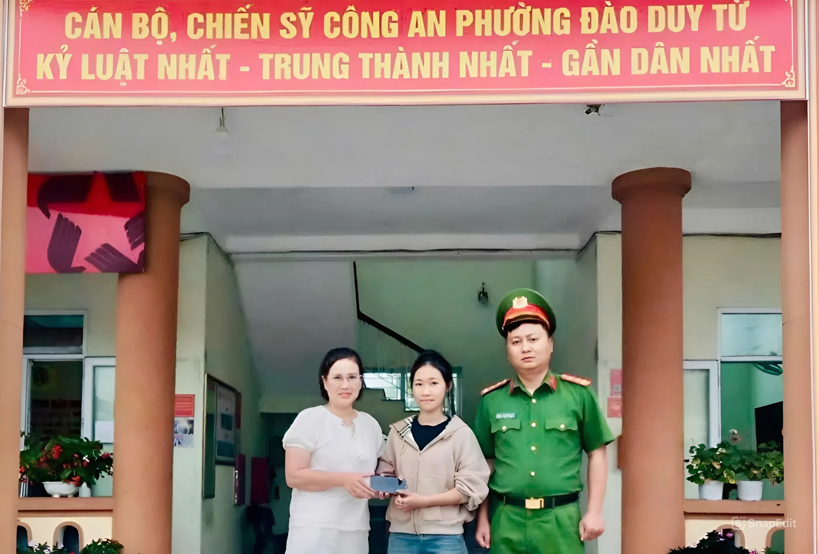 Chỉ trong thời gian ngắn sau khi tiếp nhận tin báo của người dân về việc đánh rơi tài sản, Công an phường Đào Duy Từ đã nhanh chóng xác minh, phối hợp tìm kiếm và trao trả lại tài sản cho người bị mất.