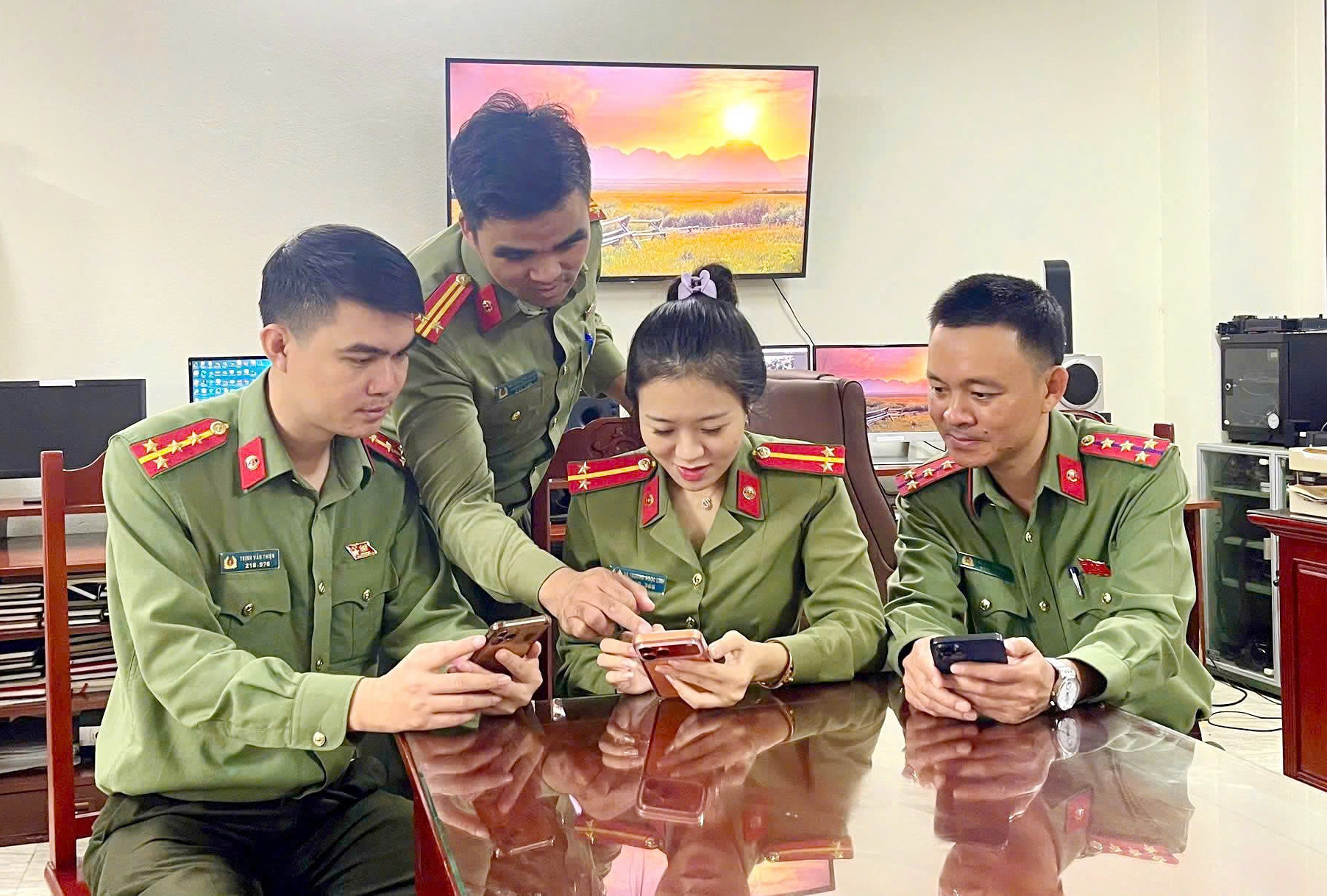 Cán bộ, chiến sĩ Công an tỉnh tham gia góp ý dự thảo các Văn kiện Đại hội XIV của Đảng trên ứng dụng VNeID