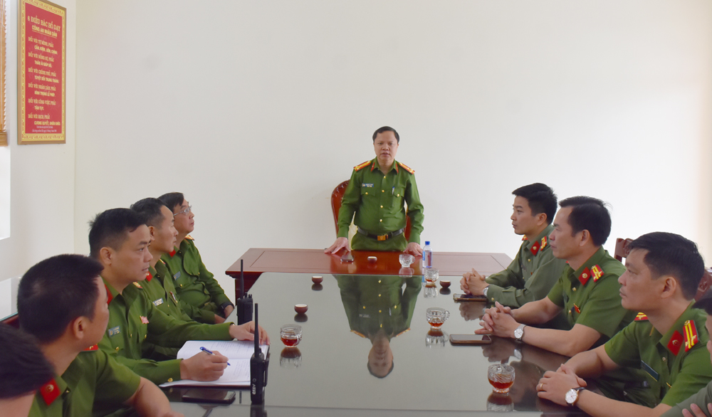 Đồng chí Phó Giám đốc Công an tỉnh phát biểu chỉ đạo tại buổi kiểm tra.