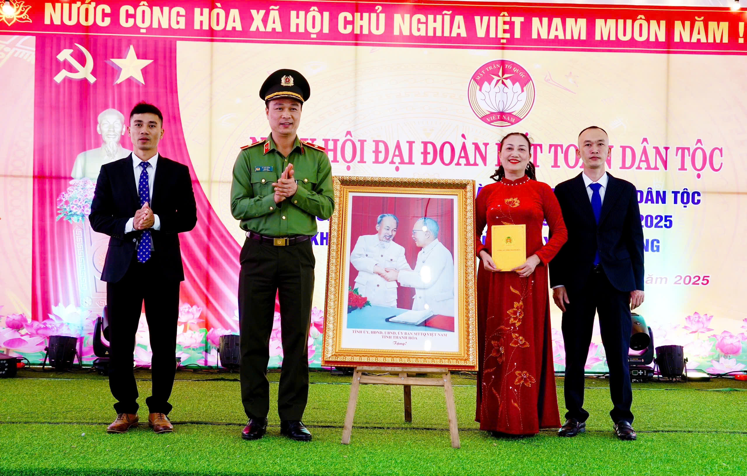 Giám đốc Công an tỉnh tặng cán bộ và Nhân dân thôn Thủ Lộc bức chân dung “Bác Hồ với Bác Tôn"