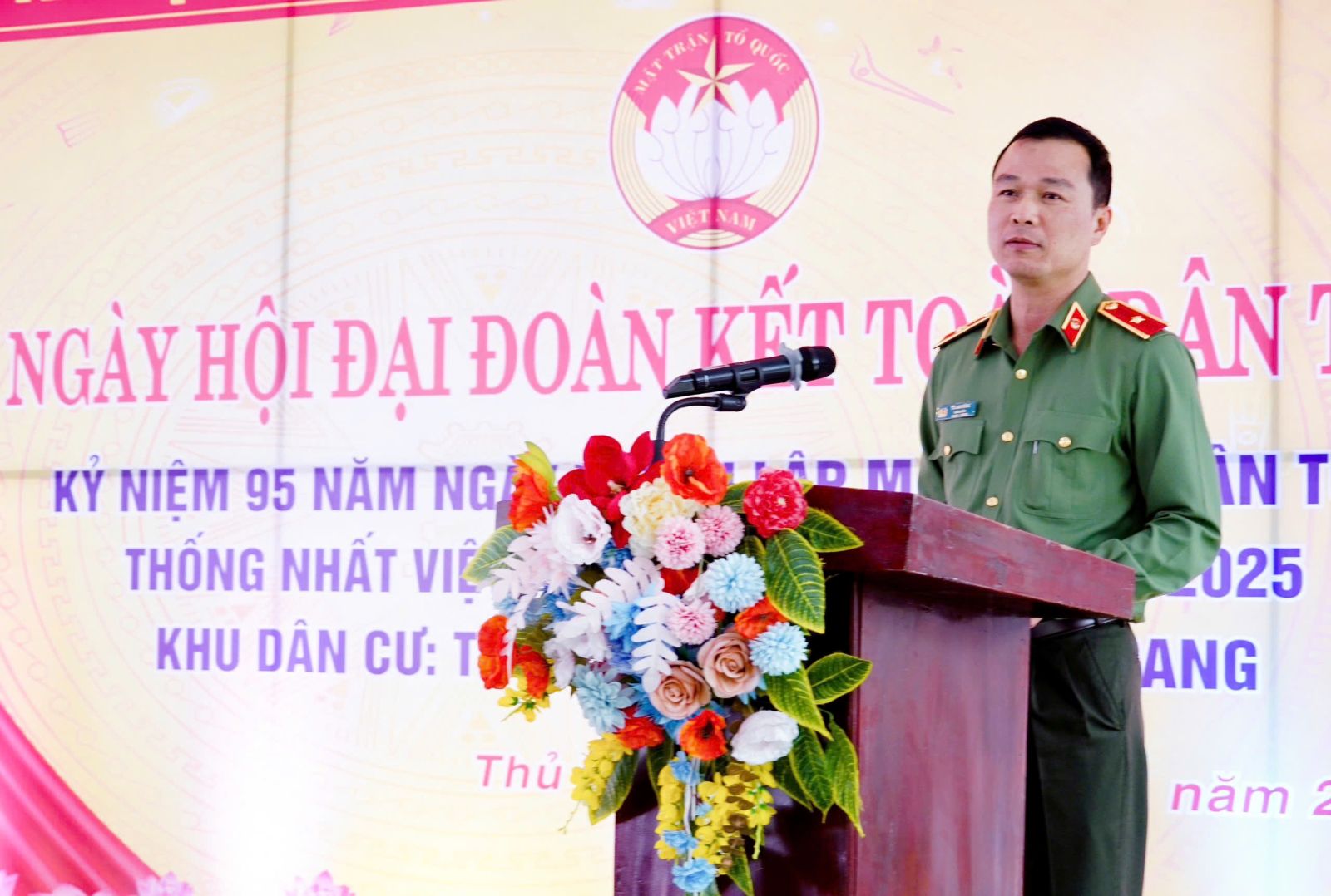 Phát biểu tại Ngày hội, Thiếu tướng Tô Anh Dũng, Giám đốc Công an tỉnh bày tỏ vui mừng được chung vui Ngày hội Đại đoàn kết toàn dân tộc với cán bộ và Nhân dân thôn Thủ Lộc. Đồng thời, đề nghị cán bộ, Nhân dân trong thôn tiếp tục đoàn kết, đồng lòng, thực hiện quyết liệt các công việc, mục tiêu đã đặt ra. Tập trung khai thác, phát huy hiệu quả các tiềm năng, lợi thế của địa phương, thúc đẩy phát triển kinh tế - xã hội, nâng cao chất lượng đời sống vật chất, tinh thần của Nhân dân.