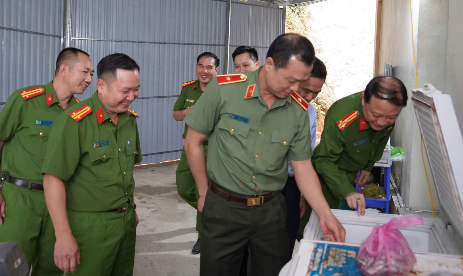 Đoàn công tác thăm nơi ăn ở, sinh hoạt, nơi làm việc, tiếp công dân, giải quyết thủ tục hành chính cho Nhân dân tại công an các xã.