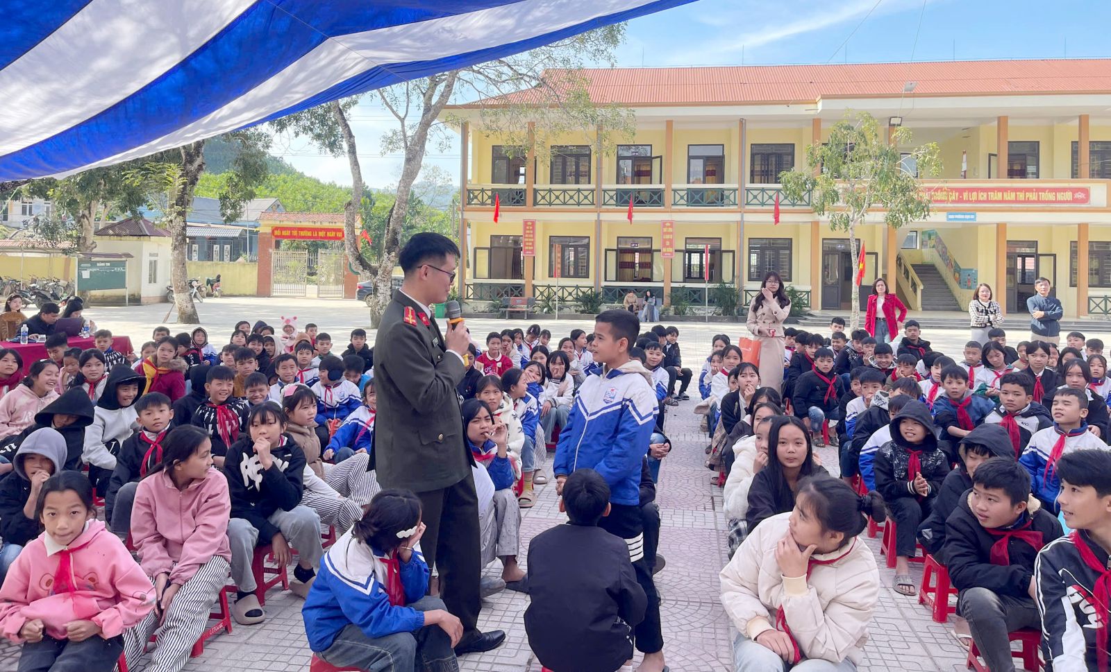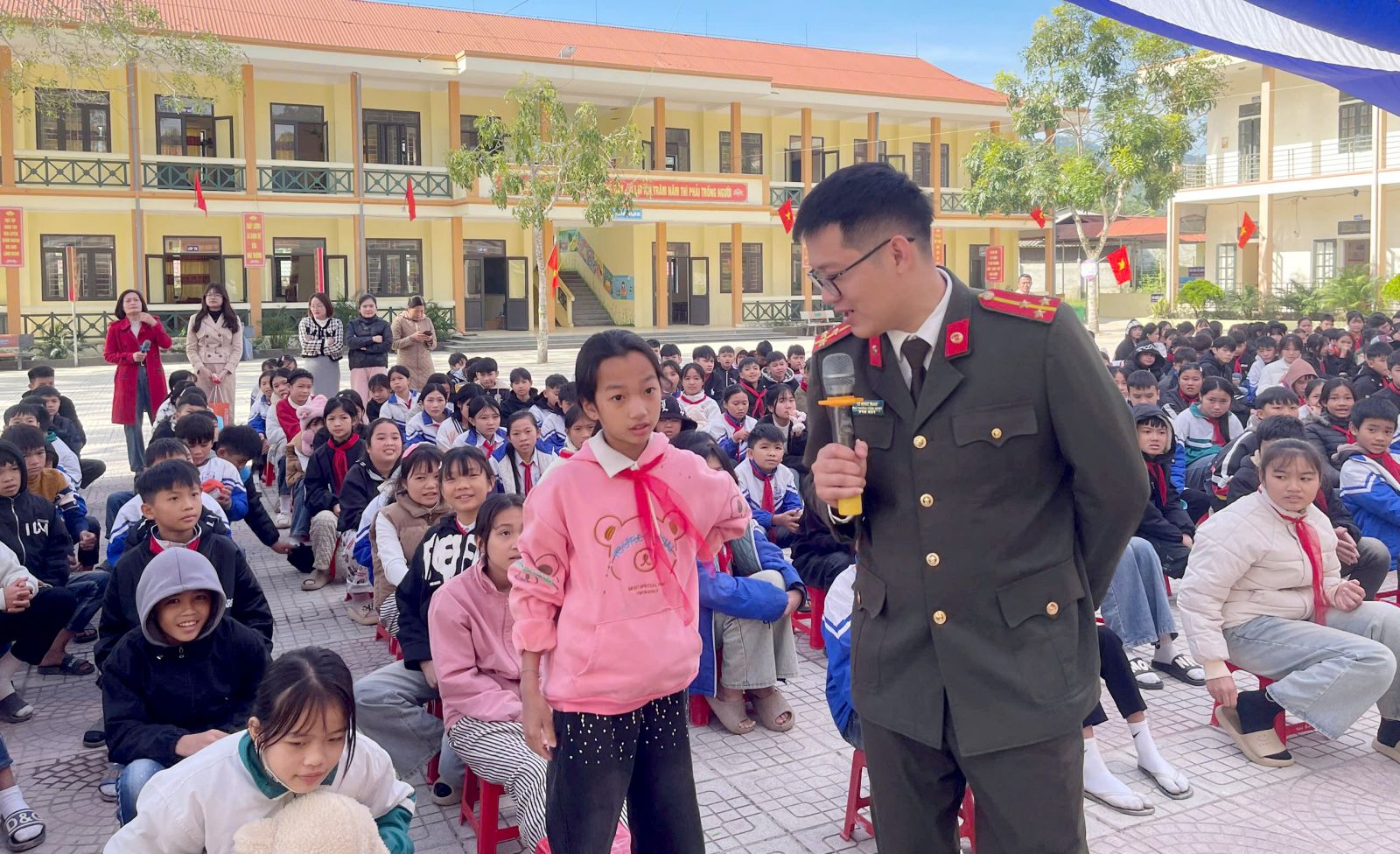 Công an xã Tân Thành trực tiếp tuyên truyền pháp luật cho học sinh trường PTDT bán trú THCS Luận Khê