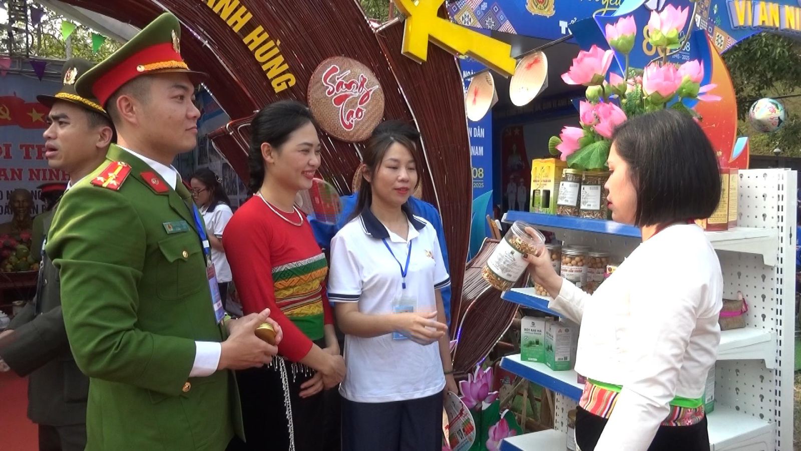 gian hàng sản phẩm OCOP thu hút được đông đảo trại viên và Nhân dân đến thăm quan.