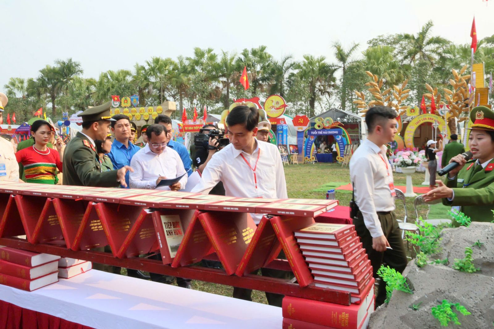 Mô hình cầu Hàm Rồng được dựng bằng sách thu hút được sự chú ý của Ban Giám khảo và người dân.