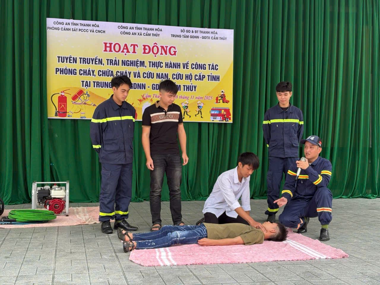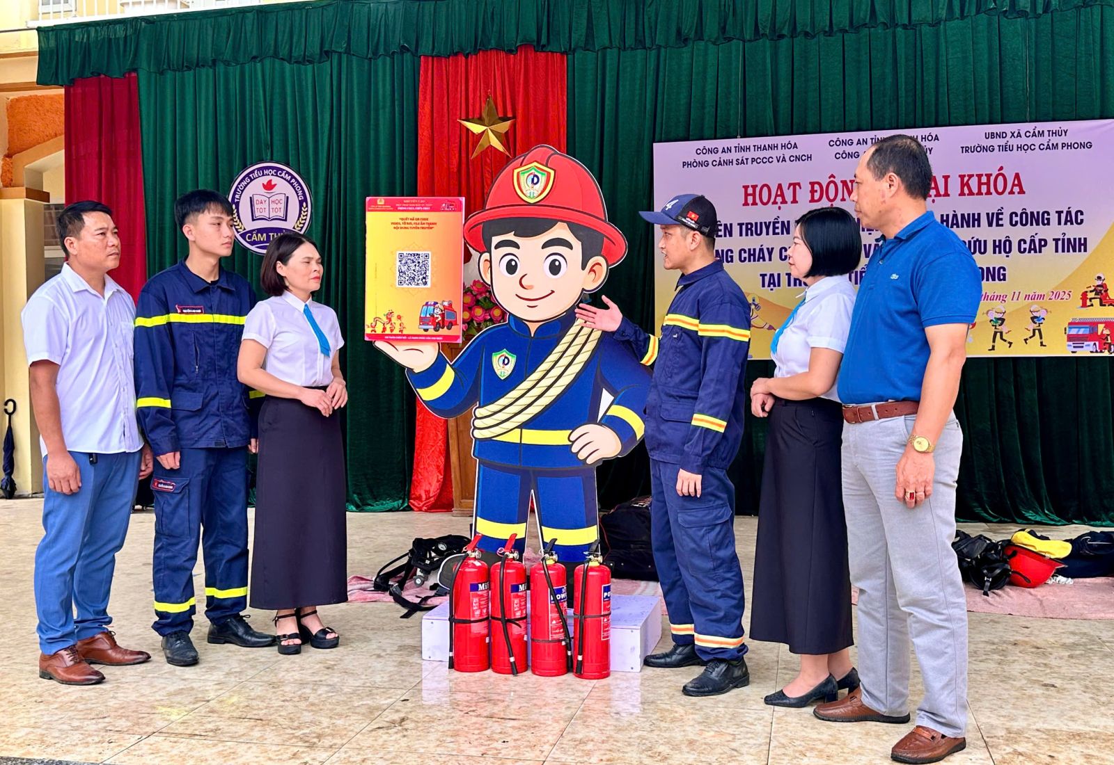 Nhằm tiếp tục đẩy mạnh công tác tuyên truyền, nâng cao kiến thức, kỹ năng về phòng cháy, chữa cháy (PCCC) và cứu nạn, cứu hộ (CNCH) trong các tầng lớp nhân dân, đặc biệt là học sinh, sinh viên, trong hai ngày 08 và 09/11/2025, Phòng Cảnh sát PCCC và CNCH, Công an tỉnh Thanh Hóa đã phối hợp với Trung tâm Giáo dục nghề nghiệp - Giáo dục thường xuyên Cẩm Thủy và Trường Tiểu học Cẩm Phong, xã Cẩm Thủy tổ chức tuyên truyền, trải nghiệm và thực hành PCCC và CNCH cho hơn 1.600 học sinh, giáo viên và người dân trên địa bàn…