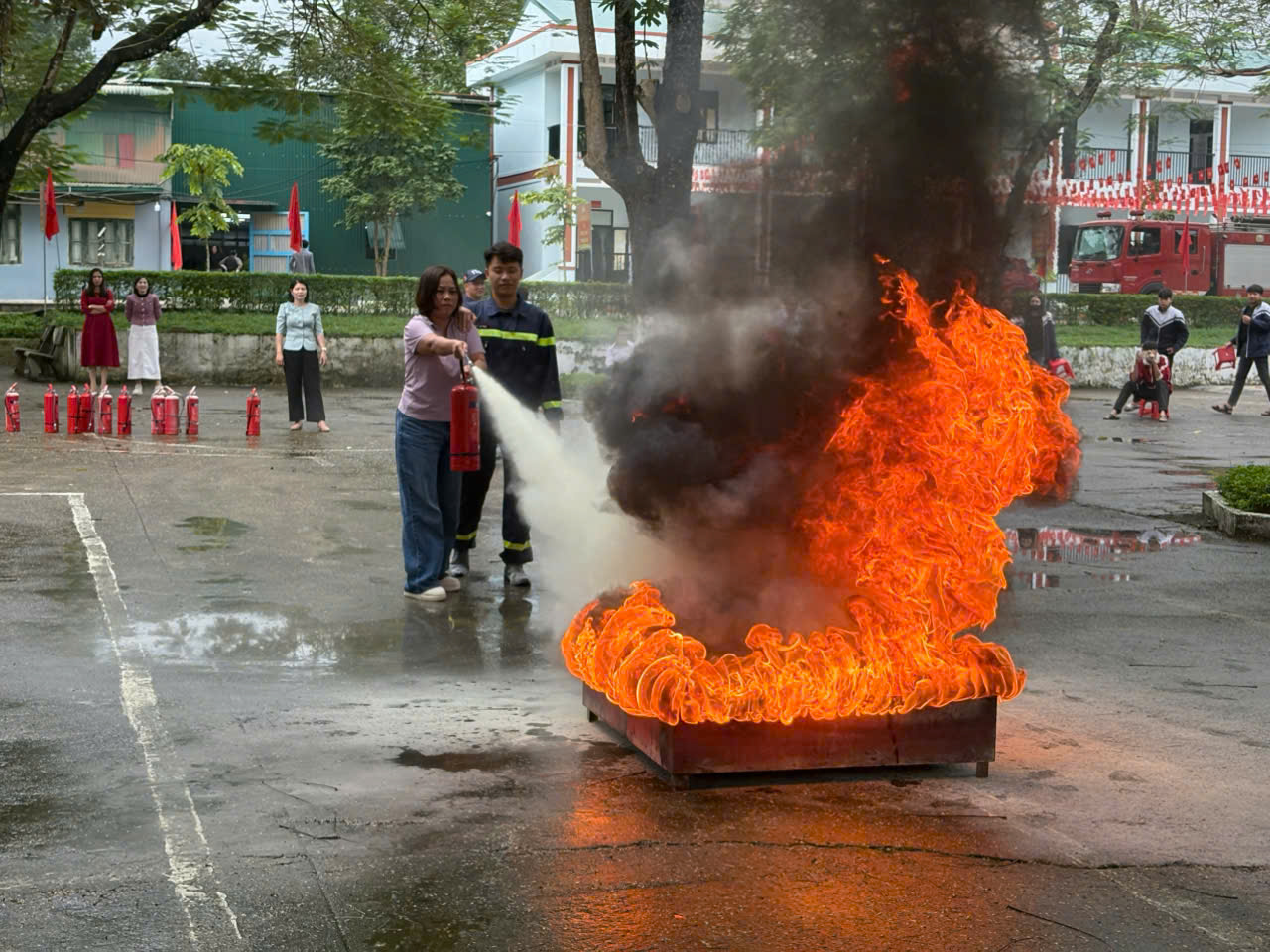 Đặc biệt, phần thực hành dập tắt đám cháy bằng bình chữa cháy cầm tay thu hút sự hào hứng của đông đảo học sinh và người dân. Thay vì chỉ học lý thuyết, việc được trực tiếp thao tác, phun bình, khống chế ngọn lửa đã mang đến cho các em những trải nghiệm sinh động, thực tế và hữu ích. Em Phạm Minh Quân, học viên Trung tâm Giáo dục nghề nghiệp - Giáo dục thường xuyên Cẩm Thủy, chia sẻ: “So với việc chỉ học trên lý thuyết, được trực tiếp thực hành giúp em hiểu rõ hơn cách sử dụng bình cứu hỏa. Những thao tác tưởng chừng phức tạp lại rất đơn giản khi được hướng dẫn đúng cách. Sau buổi trải nghiệm, em cảm thấy tự tin hơn nếu phải xử lý các tình huống cháy nhỏ xảy ra xung quanh mình.”