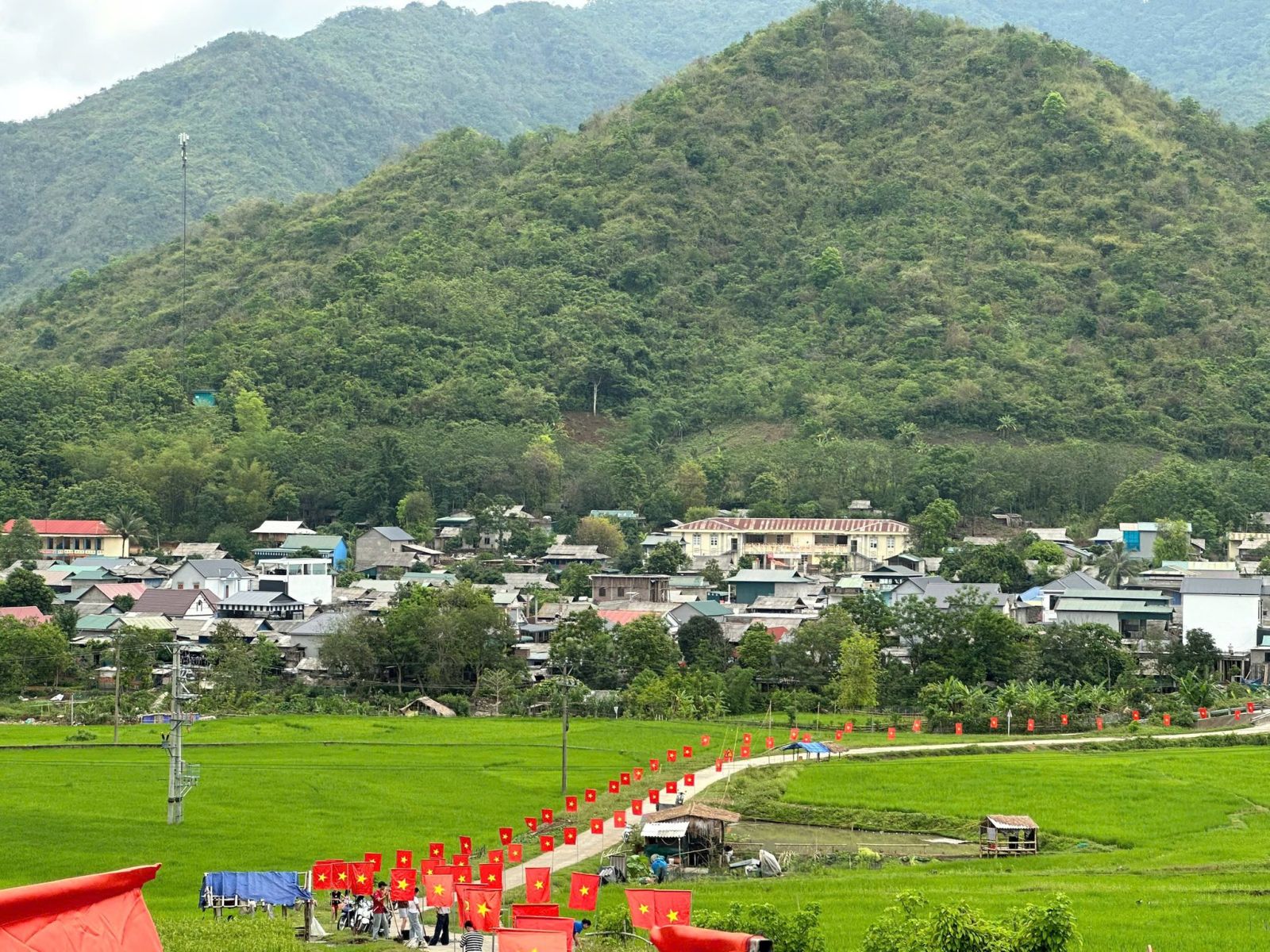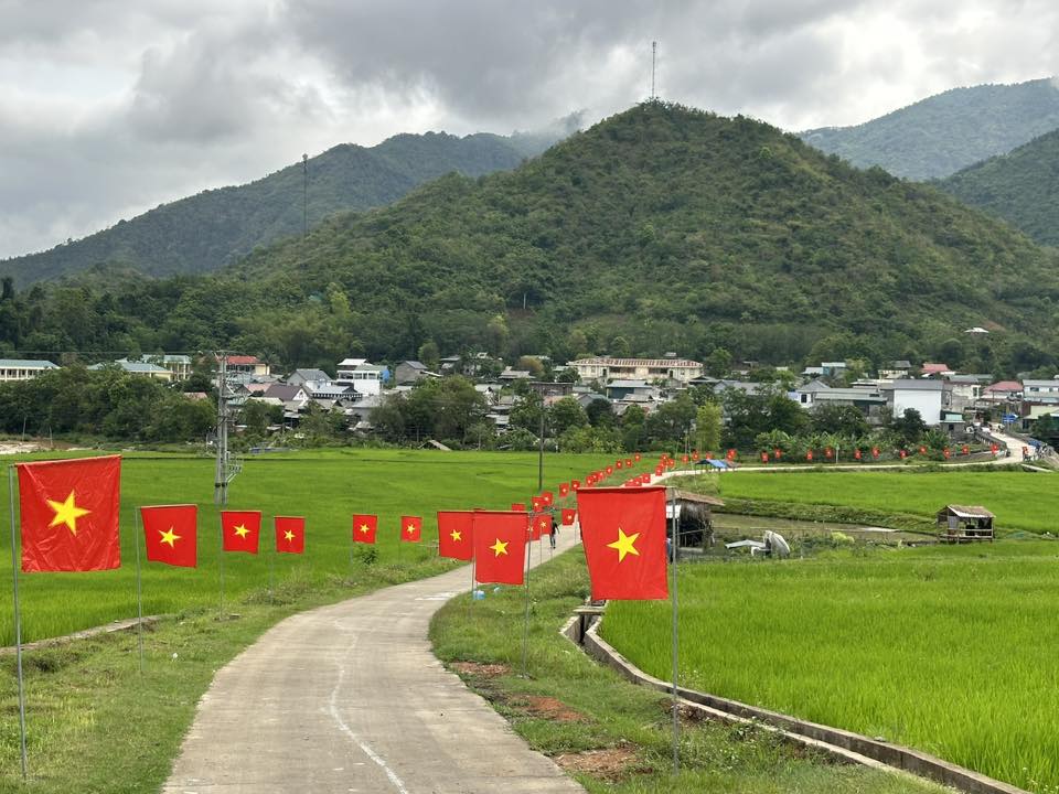 Tuyến đường cờ dài 500m rực rỡ sắc đỏ giữa không gian đồng quê xanh mát tại vùng biên Quang Chiểu