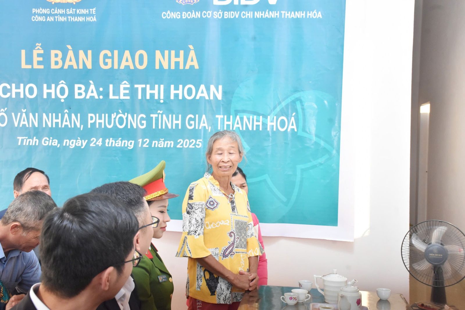 Chi đoàn Phòng Cảnh sát kinh tế phối hợp Ngân hàng BIDV Thanh Hóa bàn giao nhà tình nghĩa cho bà Lê Thị Hoan