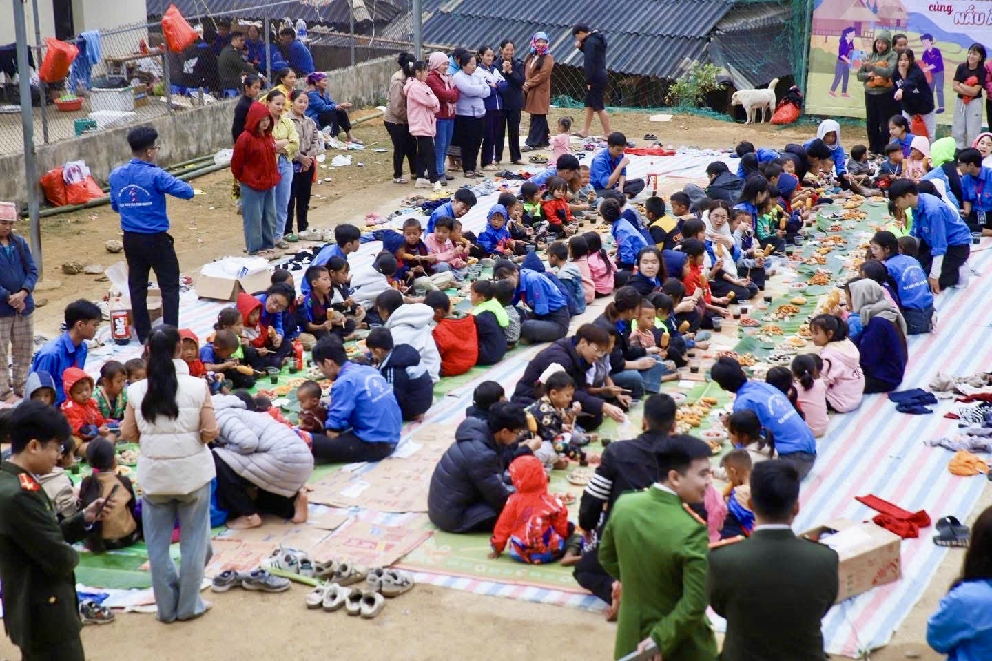 Song song với việc xây dựng hạ tầng, Đoàn công tác đã tổ chức hoạt động "Bữa cơm vùng cao" đầy ấm áp cho các em nhỏ tại điểm trường bản Pù Đứa. Những suất ăn nóng hổi do chính tay các chiến sĩ và tình nguyện viên chuẩn bị đã mang lại niềm vui, thắt chặt thêm tình đoàn kết quân dân nơi biên cương.
