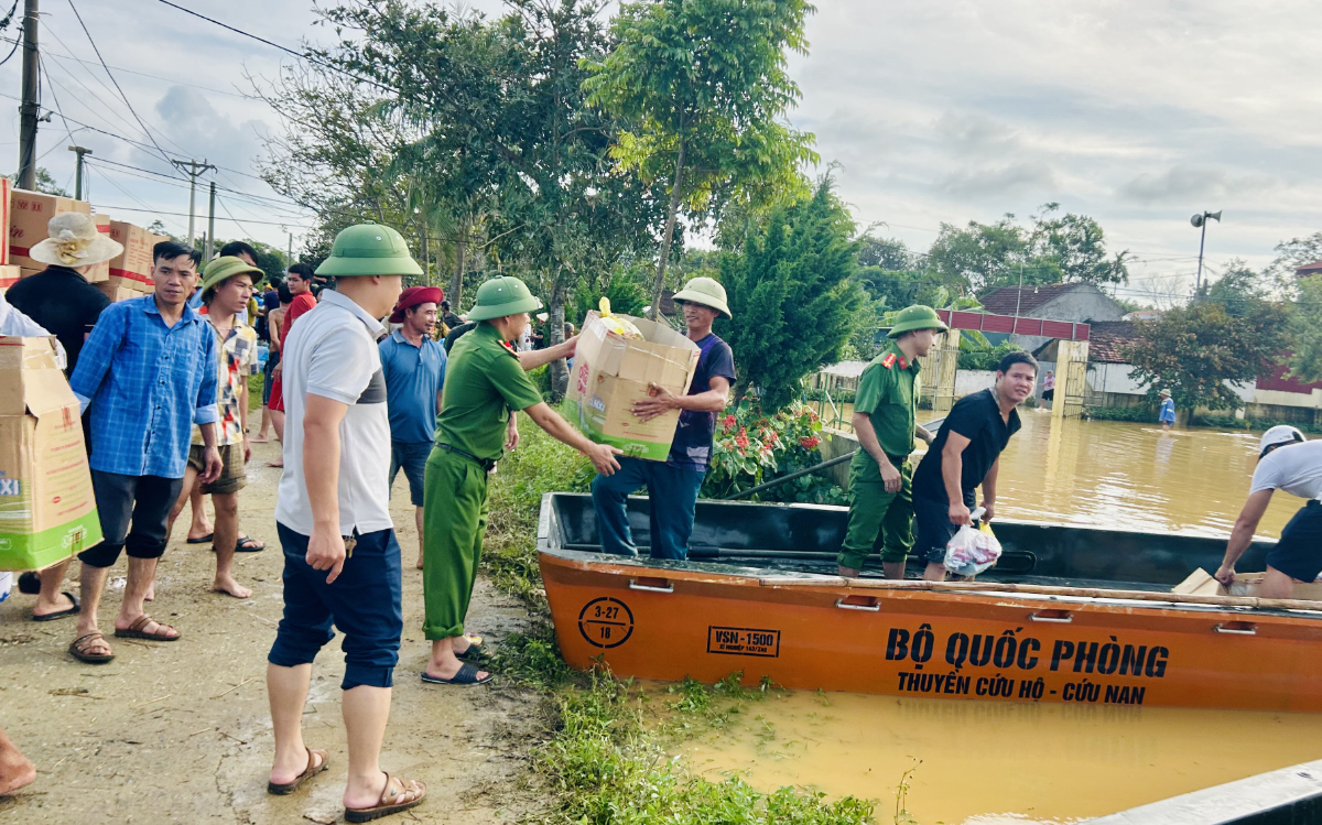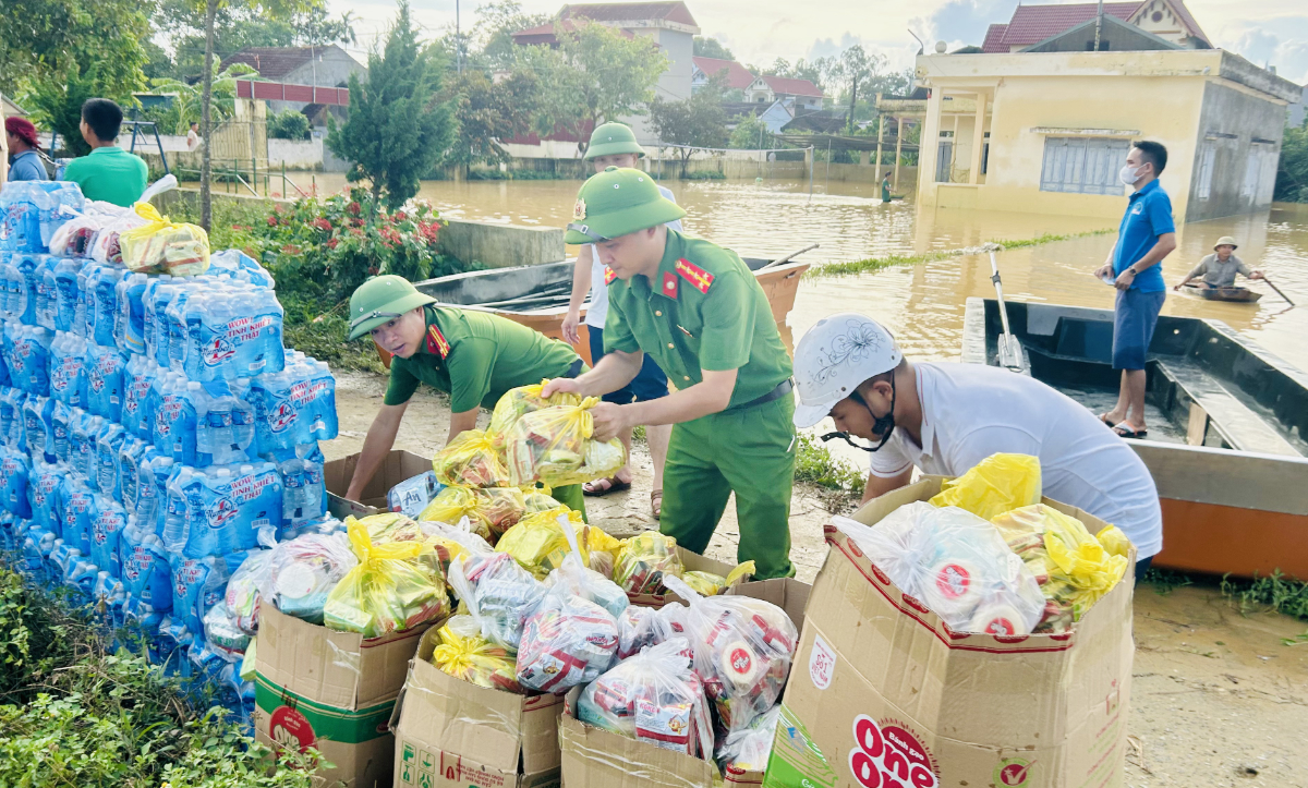 Cùng với công tác bảo vệ các tuyến đê và sơ tán người dân bảo đảm an toàn tính mạng cho Nhân dân, lực lượng Công an, dân quân và tổ ANTT còn chủ động đấu mối, hỗ trợ các đoàn thiện nguyện đưa nhu yếu phẩm thiết yếu đến tận tay người dân. Bà Nguyễn Thị Lan, Chủ tịch Câu lạc bộ Thiện Nguyện Xanh, cho biết: “Câu lạc bộ chúng tôi đã chuẩn bị 200 suất quà gồm thuốc men, nước uống, đèn pin, mì tôm, bánh mì, lương khô… để hỗ trợ người dân chịu ảnh hưởng nặng nề của bão số 10. Nhờ sự hỗ trợ nhiệt tình của lực lượng Công an và các lực lượng tại chỗ, những suất quà đã nhanh chóng được chuyển đến tận tay bà con đúng lúc cần thiết”