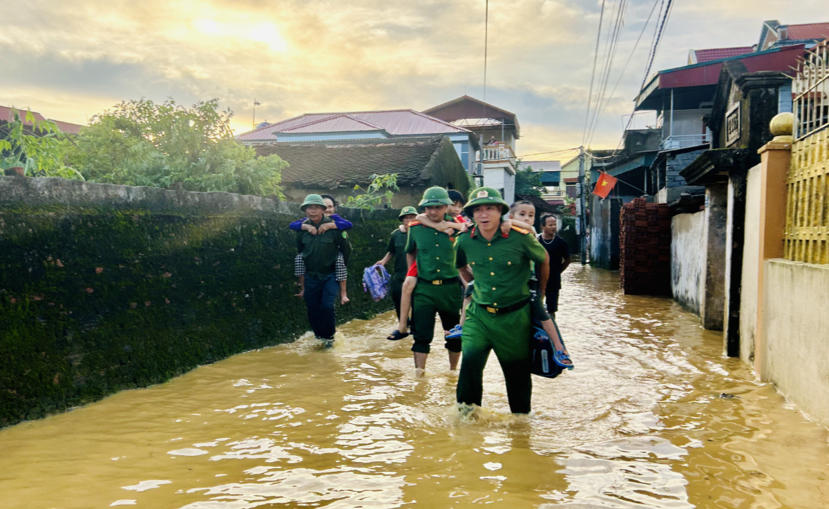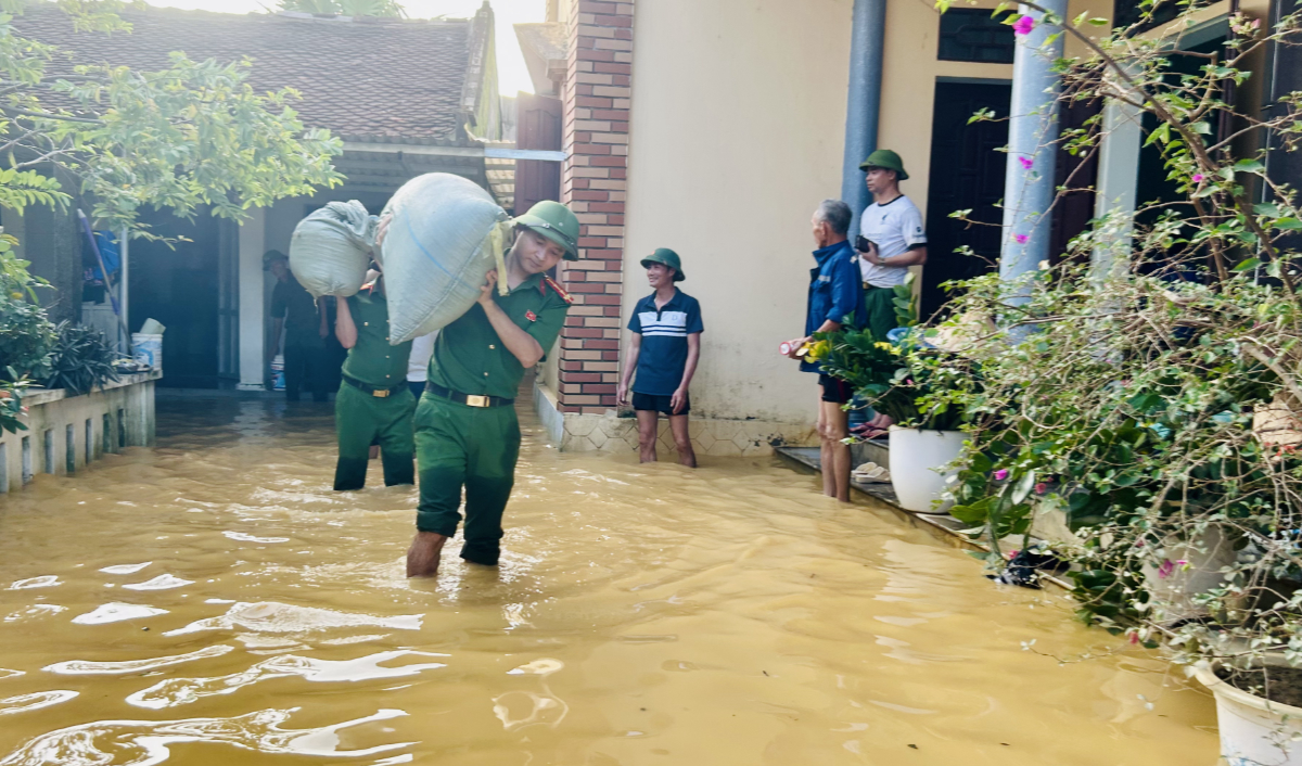 Với tinh thần khẩn trương, lực lượng Công an đã đi từng ngõ, đến từng nhà tuyên truyền, vận động di dời, giúp người dân kê cao tài sản, chuyển thóc lúa, đồ đạc thiết yếu đến nơi an toàn, đồng thời tổ chức sơ tán kịp thời những hộ dân ở vùng nguy hiểm.