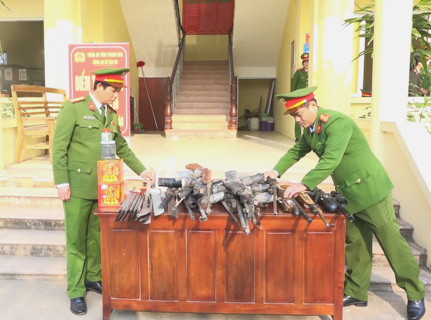 Cùng với việc tổ chức “Gian hàng thiện nguyện”, Công an xã Vân Du đã tổ chức tuyên truyền, vận động người dân tự giác giao nộp các loại vũ khí, vật liệu nổ, công cụ hỗ trợ và pháo. Kết quả, Công an xã Vân Du đã tiếp nhận 2 khẩu súng hơi, 8 khẩu súng cồn, 12 vũ khí thô sơ và 5 kg pháo các loại.