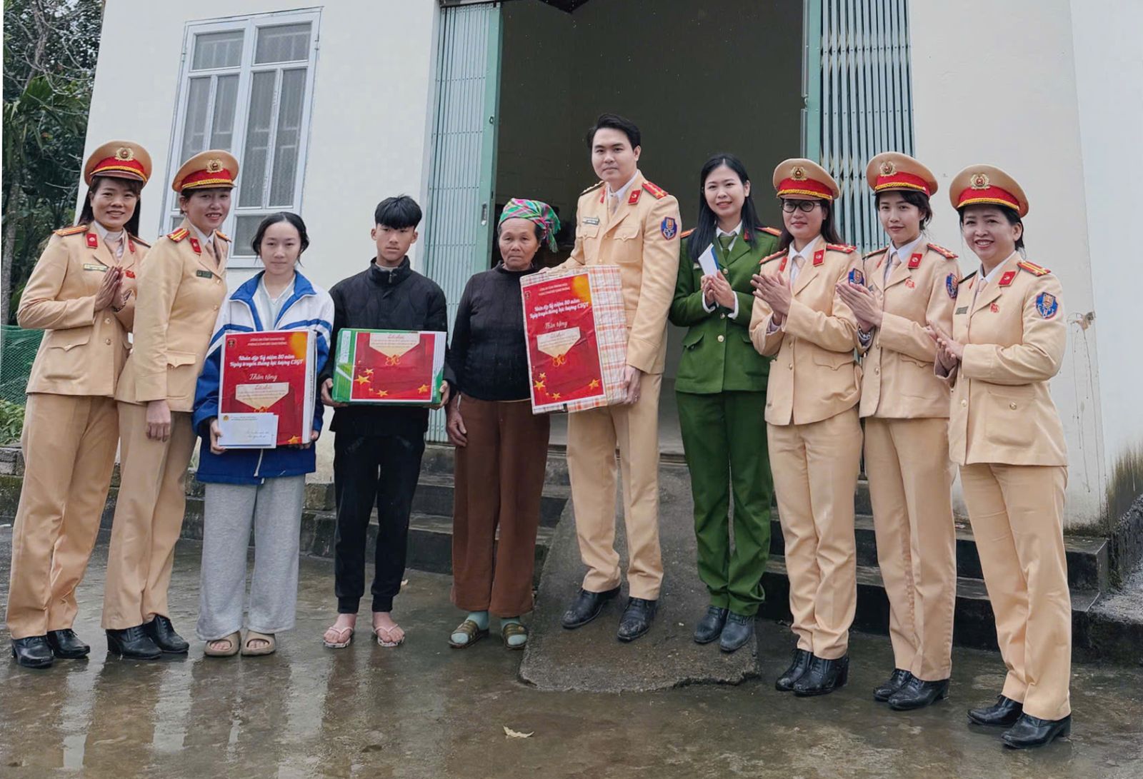 Cùng với công tác tuyên truyền, Phòng Cảnh sát giao thông đã trao tặng 520 suất bánh kẹo, 90 phần quà gồm ba lô, vở, bút màu cho học sinh có hoàn cảnh khó khăn, nỗ lực vươn lên trong học tập; trao tặng 10 xe đạp cho học sinh có hoàn cảnh đặc biệt khó khăn, đạt thành tích học tập tốt và 50 mũ bảo hiểm cho cán bộ, giáo viên nhà trường.