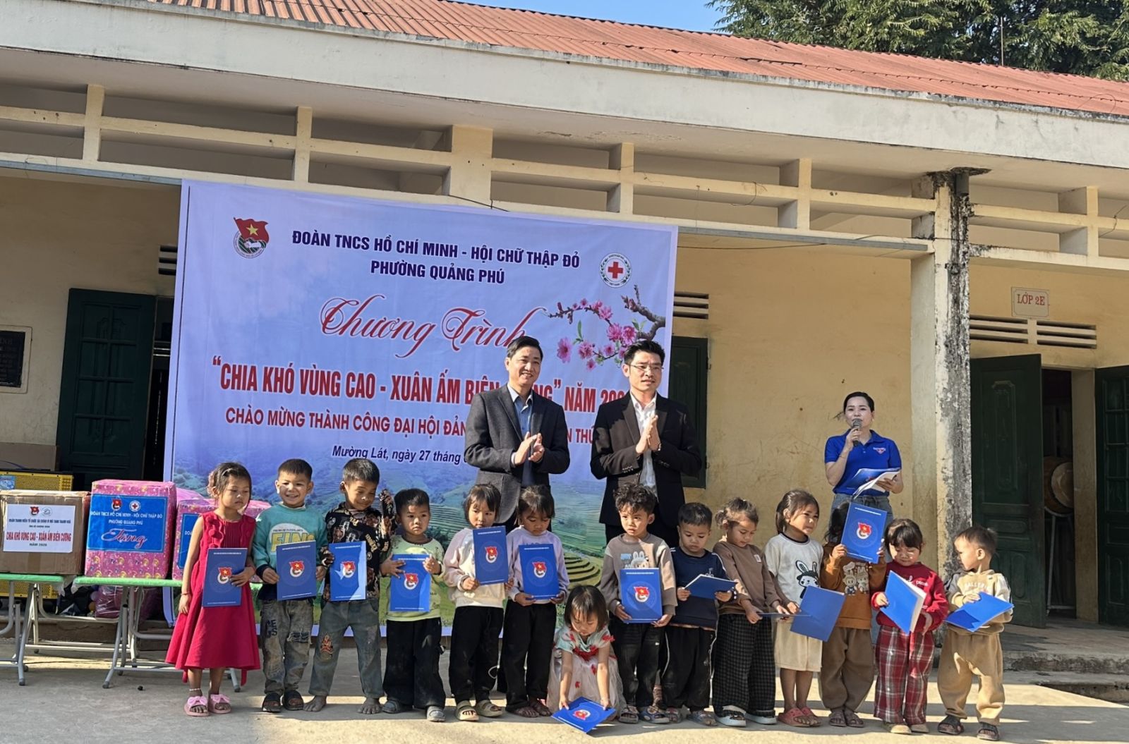 Trong khuôn khổ chương trình, Đoàn công tác của Đoàn Thanh niên và Hội Chữ thập đỏ phường Quảng Phú đã trao cho các em học sinh trường Mầm non và trường Tiểu học Tén Tằn nhiều phần quà thiết thực như: quần áo ấm, bàn ghế, chăn bông, áo đồng phục, các nhu yếu phẩm, bánh kẹo và đồ dùng học tập. Bên cạnh đó, Đoàn công tác còn trao tặng 230 phong bao lì xì cho các em học sinh nhân dịp đón Tết Nguyên đán Bính Ngọ 2026, góp phần mang đến niềm vui, sự ấm áp và động viên tinh thần cho các em trong những ngày đầu Xuân mới.