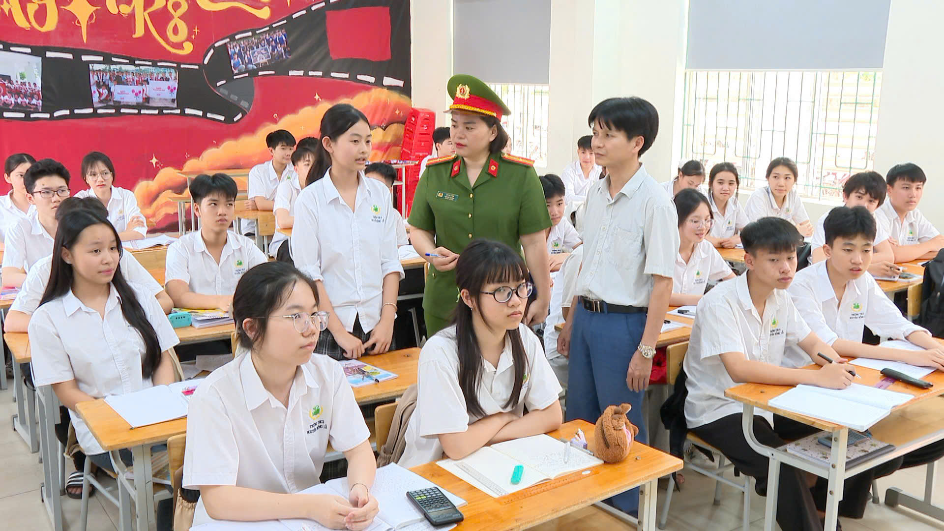 Tính hiệu quả của buổi tuyên truyền còn thể hiện ở sự tương tác trực tiếp giữa học sinh và các chiến sĩ Công an