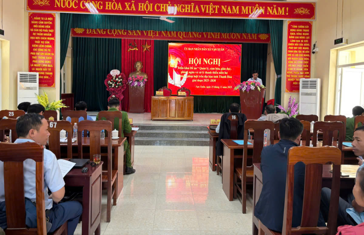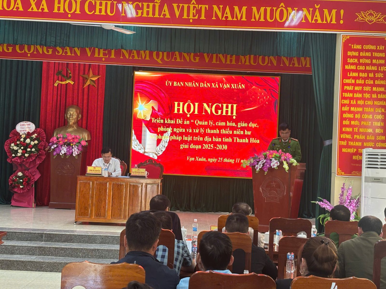 Thực hiện Đề án “Quản lý, cảm hoá, giáo dục, phòng ngừa và xử lý thanh thiếu niên hư vi phạm pháp luật trên địa bàn tỉnh Thanh Hoá, giai đoạn 2025 - 2030", chiều 25/11/2025, Uỷ ban nhân dân xã Vạn Xuân đã tổ chức Hội nghị triển khai Đề án đến các ngành, đoàn thể, các nhà trường, các thôn và toàn thể cán bộ, Nhân dân trên địa bàn xã.