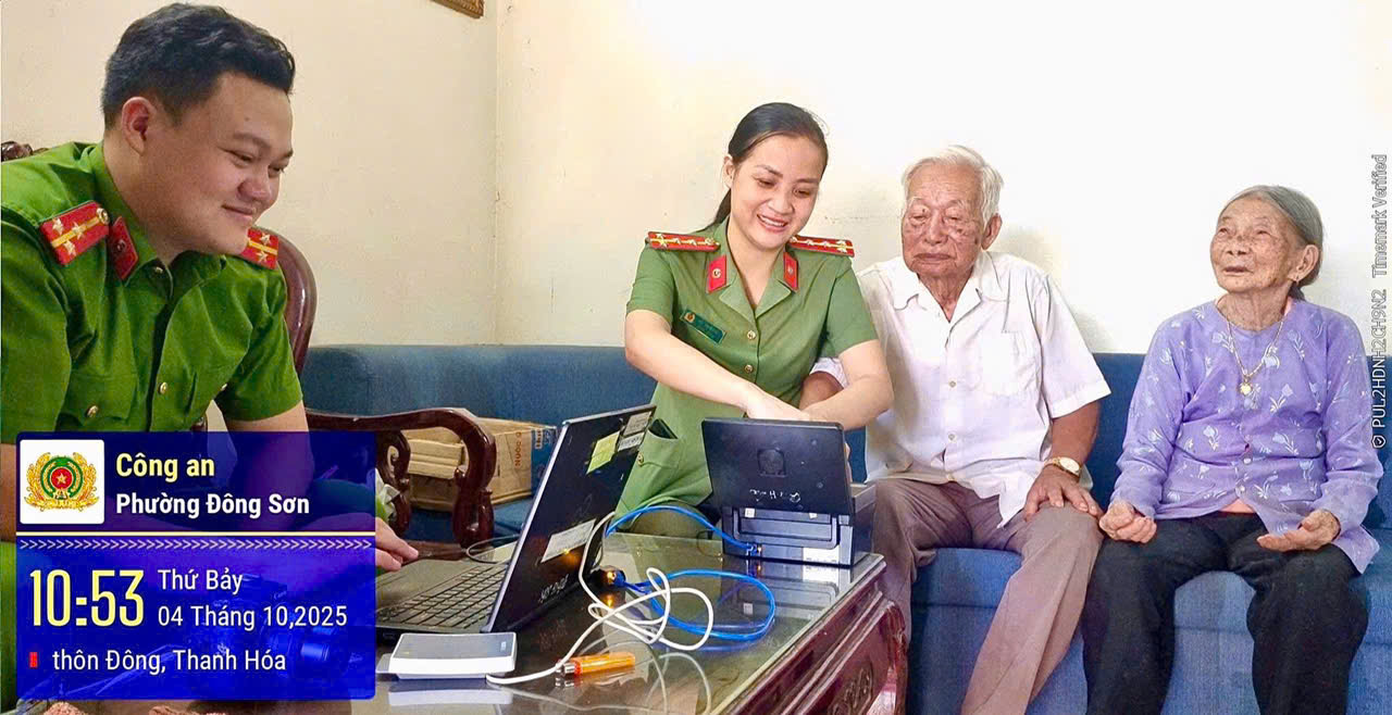 Cán bộ, chiến sĩ Công an phường Đông Sơn thường xuyên bám sát địa bàn hỗ trợ người dân tiếp cận và thụ hưởng dịch vụ công trực tuyến, lan tỏa hình ảnh đẹp về người chiến sĩ Công an