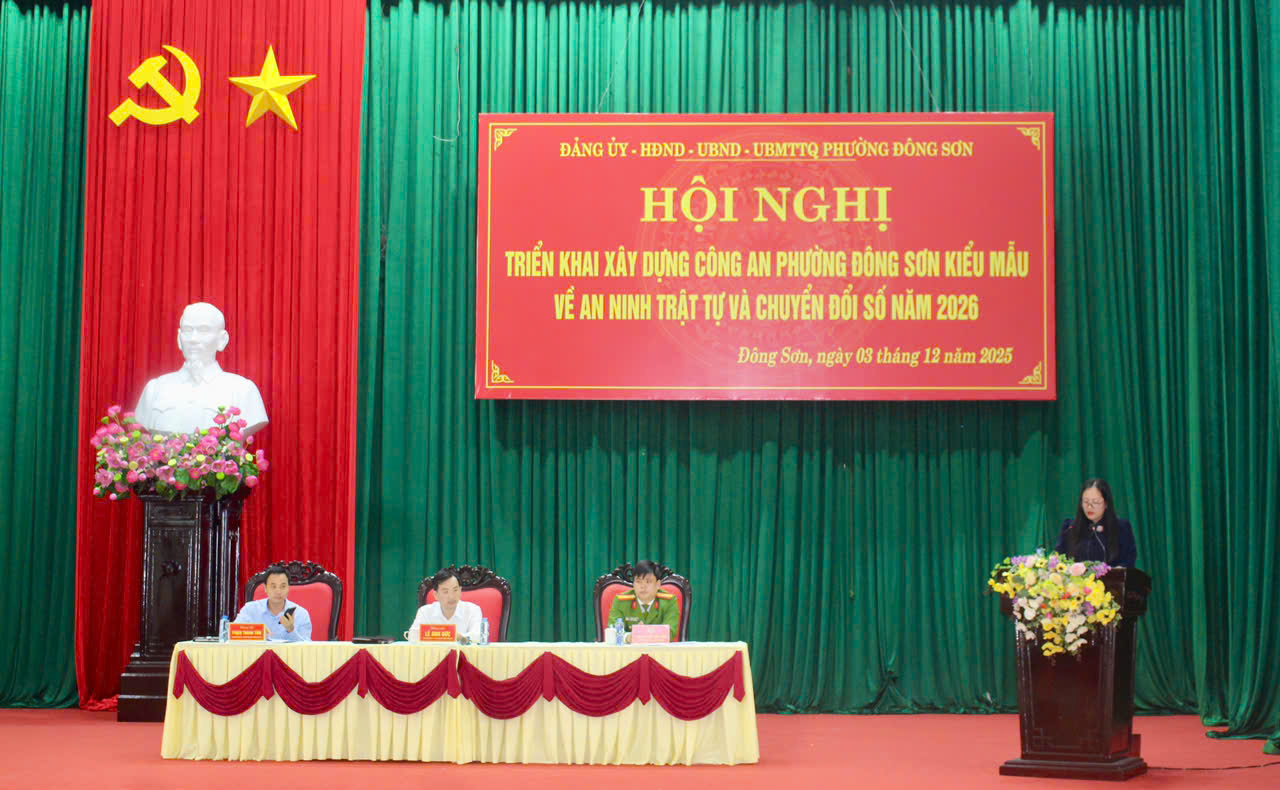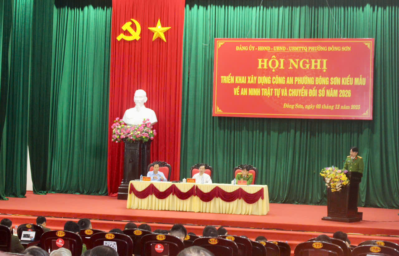 Sáng 03/12, UBND phường Đông Sơn tổ chức Hội nghị triển khai Kế hoạch xây dựng Công an phường Đông Sơn điển hình, kiểu mẫu về an ninh, trật tự (ANTT) và chuyển đổi số vào năm 2026. Đây là sự kiện có ý nghĩa quan trọng, thể hiện quyết tâm và sự cụ thể hóa Nghị quyết của Đảng ủy Công an Trung ương về tiếp tục đẩy mạnh xây dựng Công an cấp xã đáp ứng yêu cầu, nhiệm vụ trong tình hình mới…