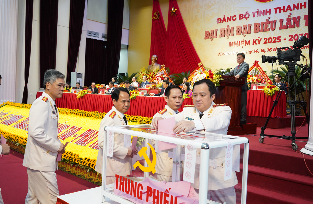 Đoàn Đại biểu Công an tỉnh bỏ phiếu bầu Ban Chấp hành Đảng bộ tỉnh Thanh Hóa khóa XX,