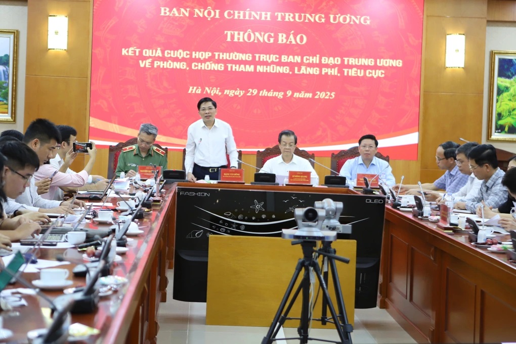 Chiều 29/9, thông báo kết quả cuộc họp Thường trực Ban Chỉ đạo Trung ương phòng chống tham nhũng, lãng phí, tiêu cực, Phó trưởng Ban Nội chính Trung ương Đặng Văn Dũng cho biết tại cuộc họp, Tổng Bí thư Tô Lâm nhấn mạnh 3 kết quả nổi bật.